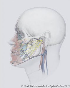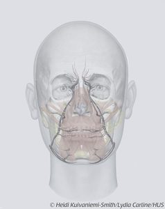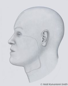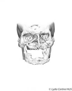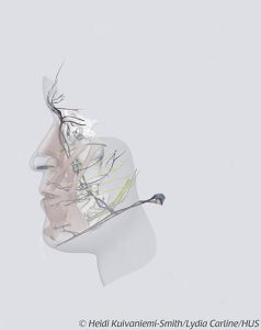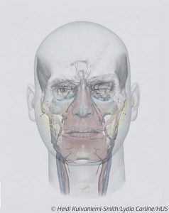 The first facial tissue transplant surgery of Finland and the Nordic Countries was carried out in Helsinki in 2016. I collaborated with the leading surgeon Patrik Lassus and another forensic artist/anatomist Lydia Carline to create anatomical illustrations to explain the procedure to the general public and professionals in healthcare fields. We created over 30 illustrations altogether, some of which were widely distributed in the Finnish media. Here are some examples.