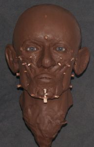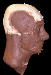 This method emphasises a scientific and anatomically correct approach to constructing a human face. It is possible to estimate the approximal size of the facial muscles based on the details of the skull and bone surface. These muscles are created first along with fat tissue and larger glands (parotid gland), which give shape to the face. Tissue depth pegs are attached to the skull (replica) to help with the estimation of the amount of soft tissue (muscles, fat, skin) required on the bone to build a face accurately. The length of the tissue depth pegs is based on average data of an ethnic group that matches the ethnicity of the individual. Artistic skills are required for the technical part of reconstructing the face but more importantly for creating a natural looking face that is easy to engage with for anyone who looks at the face.